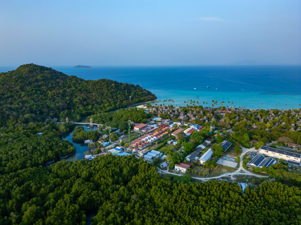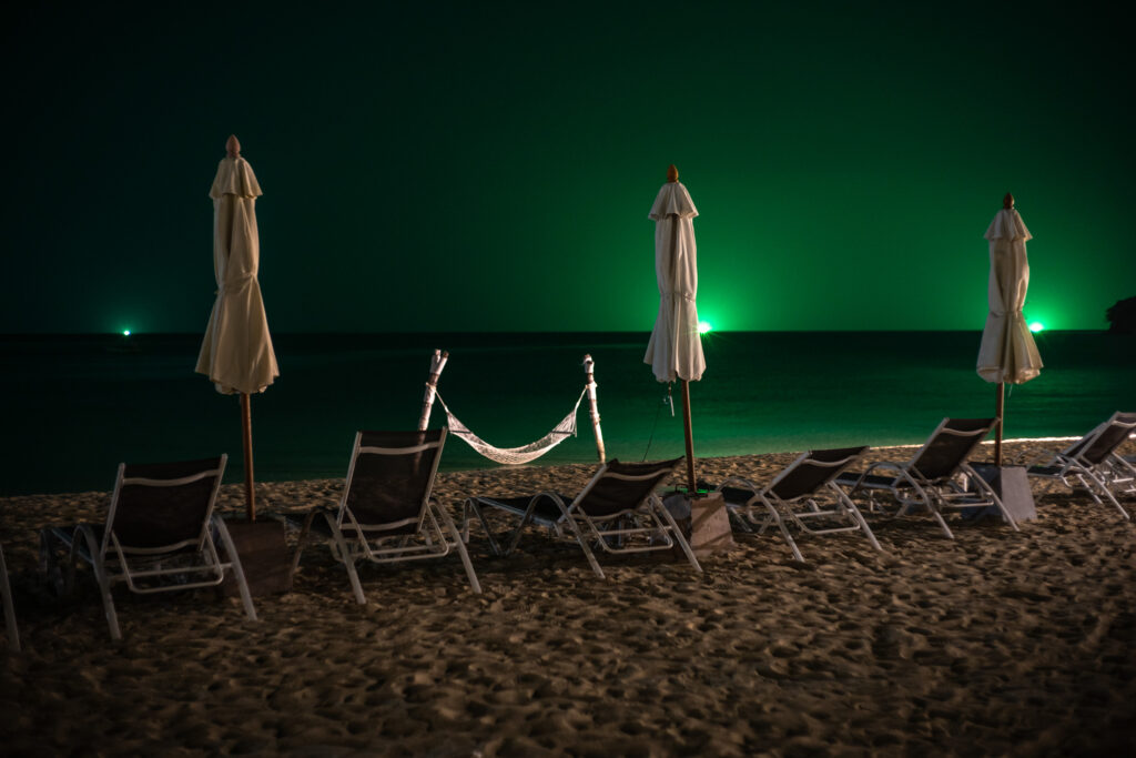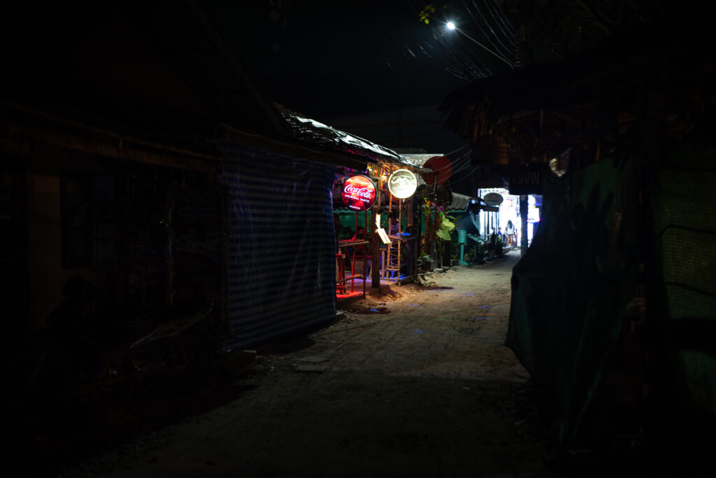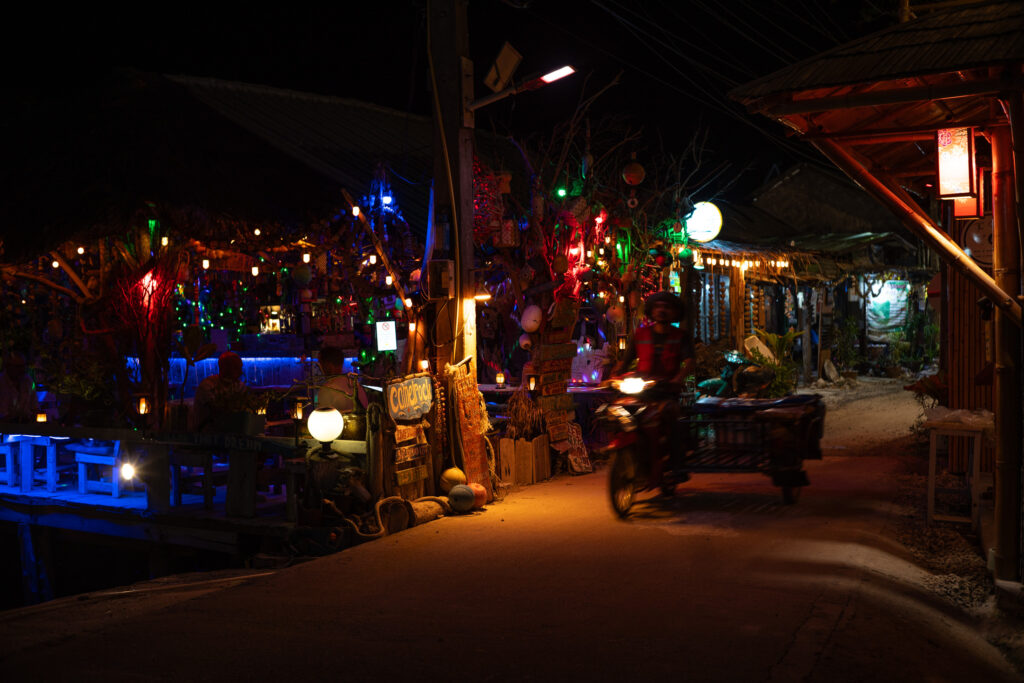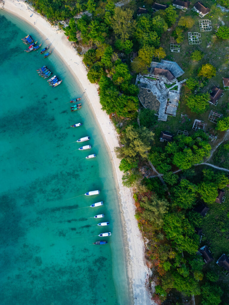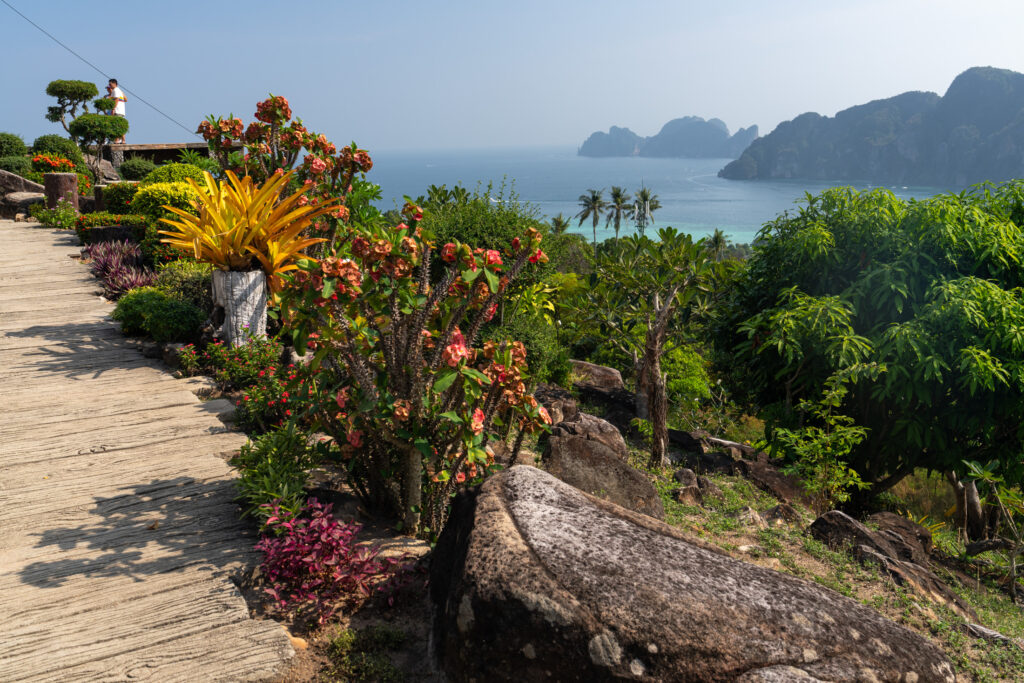 Ko Phi Phi commence comme un rêve un peu irréel. On loge à l’écart de la ville, dans un petit coin paisible à dix minutes à pied d’un village étonnamment charmant. C’est coloré, vivant sans être bruyant, avec des LEDs discrètes, des restos décorés avec goût, des bars détendus, des salons de massage accueillants, un peu de cannabis ici ou là… mais tout dans une ambiance calme et chaleureuse. On y mange un excellent Tom Kha Gai et un Panang Curry au porc chez Thaï Sea, on découvre que le porc s’accorde bien mieux que le poulet avec cette sauce. Le massage du soir au Chayamassage finit de compléter le tableau. L’ambiance ici est douce, fluide, relax. Le resort est nickel : chalets confortables, piscine impeccable, tout est bien pensé pour le farniente sans prétention. Le temps passe entre balades, baignades, photos, et jus de fruits de la passion.