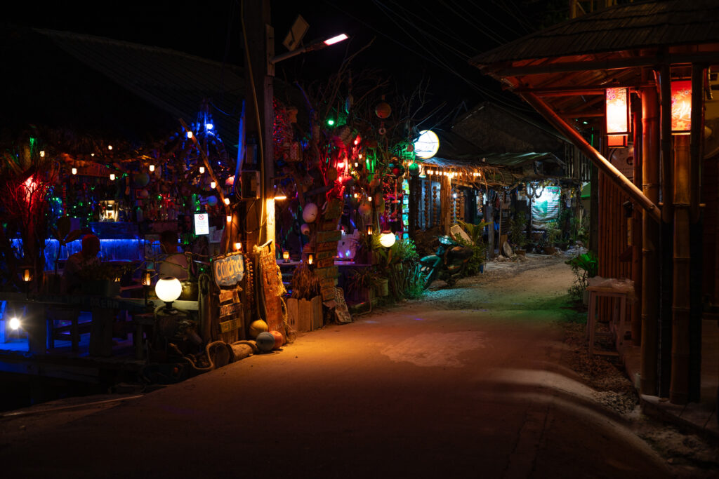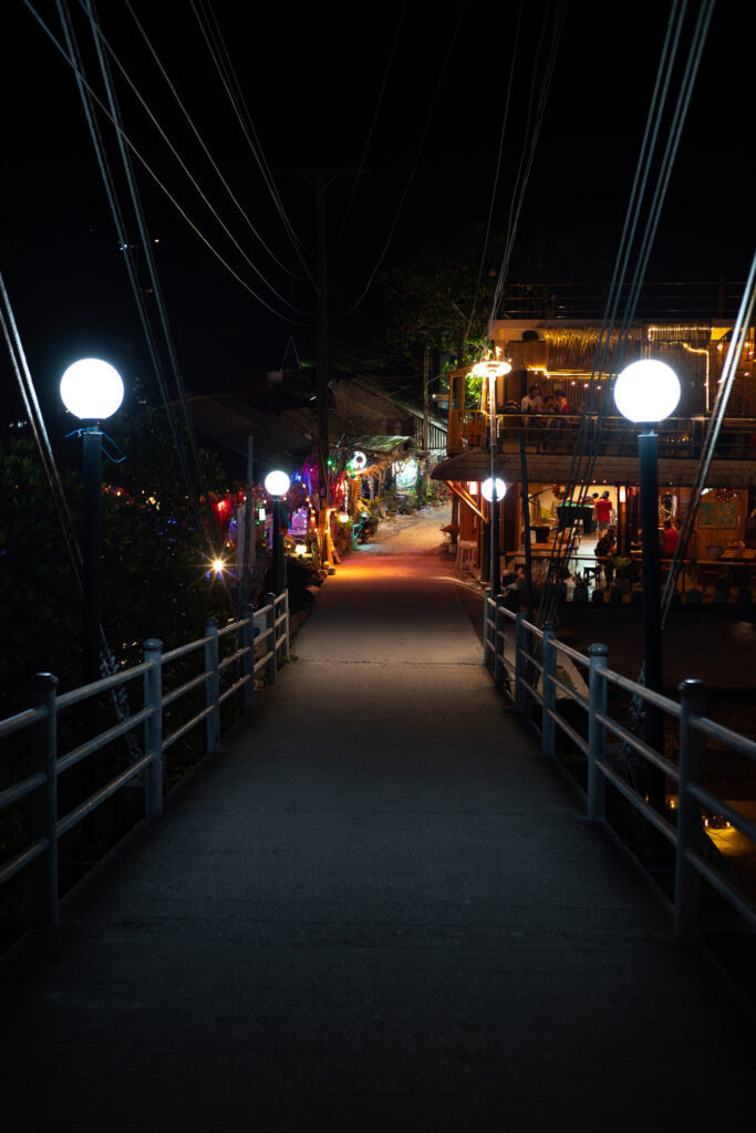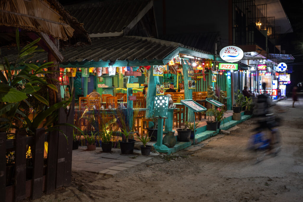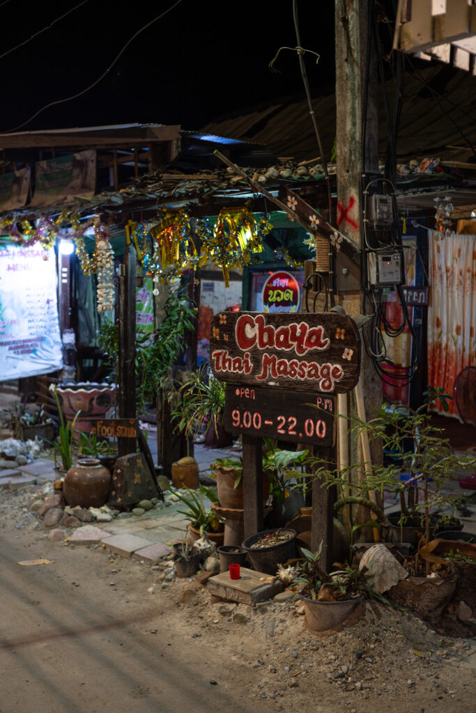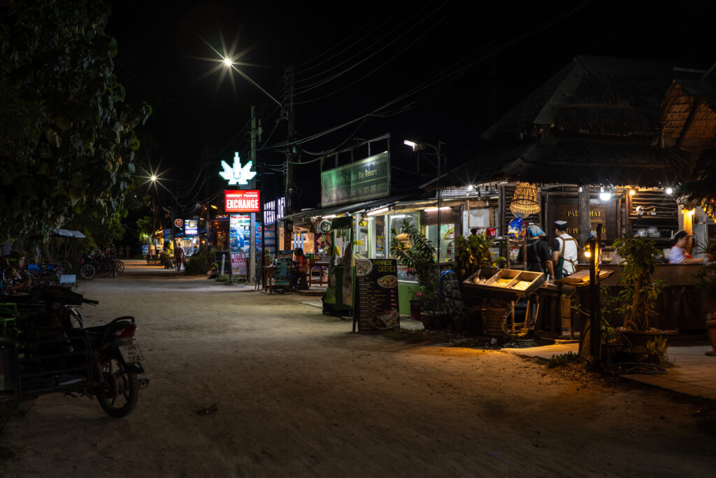 Ko Phi Phi commence comme un rêve un peu irréel. On loge à l’écart de la ville, dans un petit coin paisible à dix minutes à pied d’un village étonnamment charmant. C’est coloré, vivant sans être bruyant, avec des LEDs discrètes, des restos décorés avec goût, des bars détendus, des salons de massage accueillants, un peu de cannabis ici ou là… mais tout dans une ambiance calme et chaleureuse. On y mange un excellent Tom Kha Gai et un Panang Curry au porc chez Thaï Sea, on découvre que le porc s’accorde bien mieux que le poulet avec cette sauce. Le massage du soir au Chayamassage finit de compléter le tableau. L’ambiance ici est douce, fluide, relax. Le resort est nickel : chalets confortables, piscine impeccable, tout est bien pensé pour le farniente sans prétention. Le temps passe entre balades, baignades, photos, et jus de fruits de la passion.